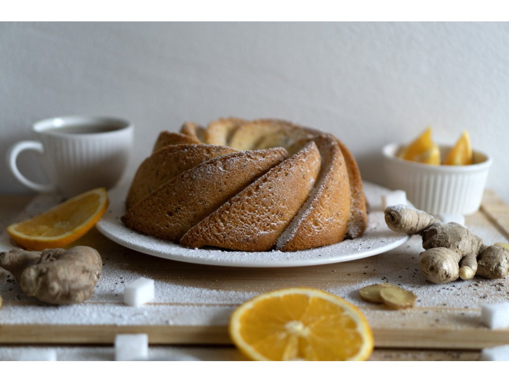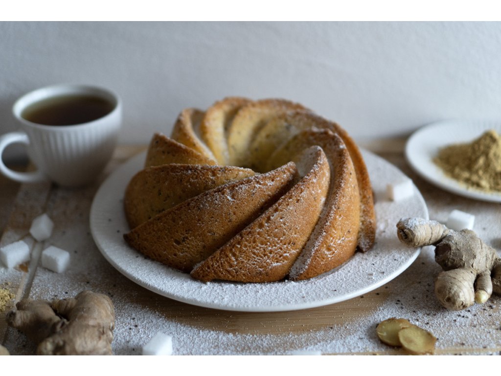 Pšeničná mouka, vejce, slunečnicový olej, cukr, vaječný krém [voda, cukr, líh, vaječné žloutky 9,2 %, stabilizátor: E415; aromata, vaječné bílky 0,014 %; barviva: E102*, E110*, E124*], nápoj se zázvorem 9,4 % (jablečná šťáva, zázvorová šťáva 4 %, citronová šťáva z koncentrátu citronové šťávy, vitamin C, vitamin D, glukonát zinečnatý), vanilínový cukr (cukr, aroma), zázvor mletý 2,3 %, chia semínka, kypřicí látky: difosforečnany, hydrogenuhličitan sodný; kukuřičný škrob.